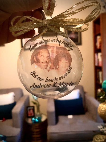 We will personalize each ornament with your name or any picture of your choice! You can have your kids' drawings on their ornaments or  a picture of your dog.